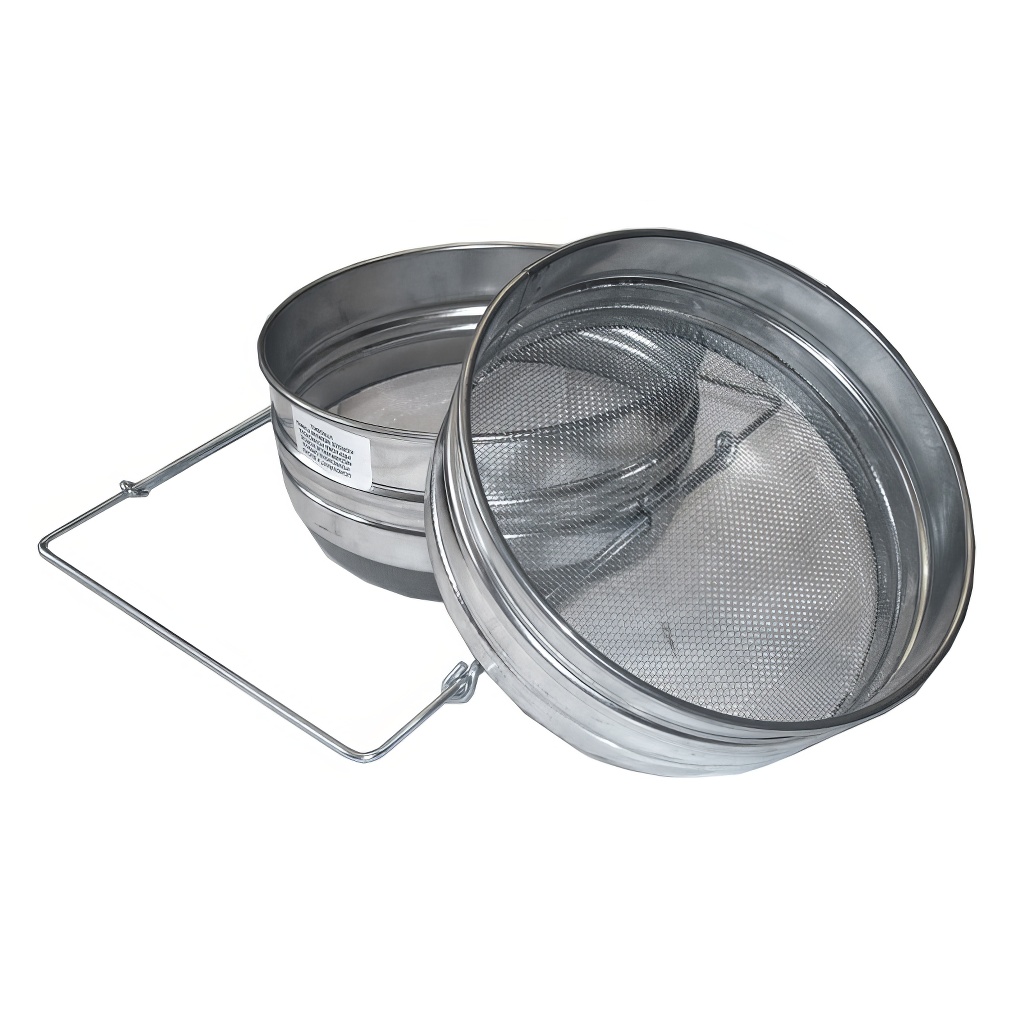 Mézszűrő mézszűréshez 210 mm átmérővel. A szűrő dupla, domború, ónozott és állítható fogókkal rendelkezik. A szűrő finom és durva. A fémszövet szilárdan kapcsolódik az acéllemez szegélyhez és a horoggal ellátott tartóhoz, amely acéldrótból készült. Minden galvanikusan fényesen bevont. Az átmérő 21 cm. Finom szűrő 1x1 mm-es lyukakkal és durvább 2x2 mm-es lyukakkal. A szűrőt frissen pörgetett méz szűrésére használják, amelyet meg kell tisztítani a fedél maradványoktól és a lép töredékektől. A szűrő állítható fogókkal rendelkezik, amelyek praktikusabbá teszik a használatot. A sűrűbb szűrő domború, a ritkább pedig lapos. Az ón népszerű tisztaságáról, élelmiszerbiztonságáról és korrózióállóságáról. Ellenáll a légköri hatásoknak, a víz és a szerves savak hatásának. Az ónt főként az élelmiszeriparban használják.